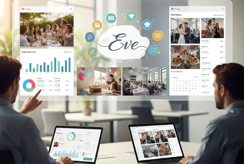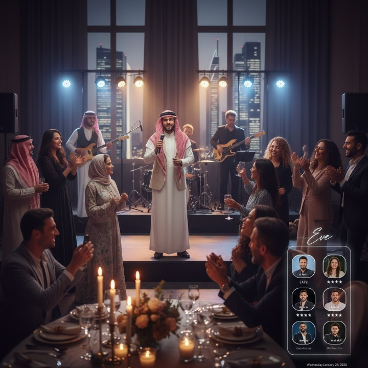 مع Eve… كل ما تحتاجه لمناسبتك في مكان واحد: توزيعات، هدايا، تصوير، مطربين، ولائم وأكثر. احجز بسهولة وبأفضل الأسعار